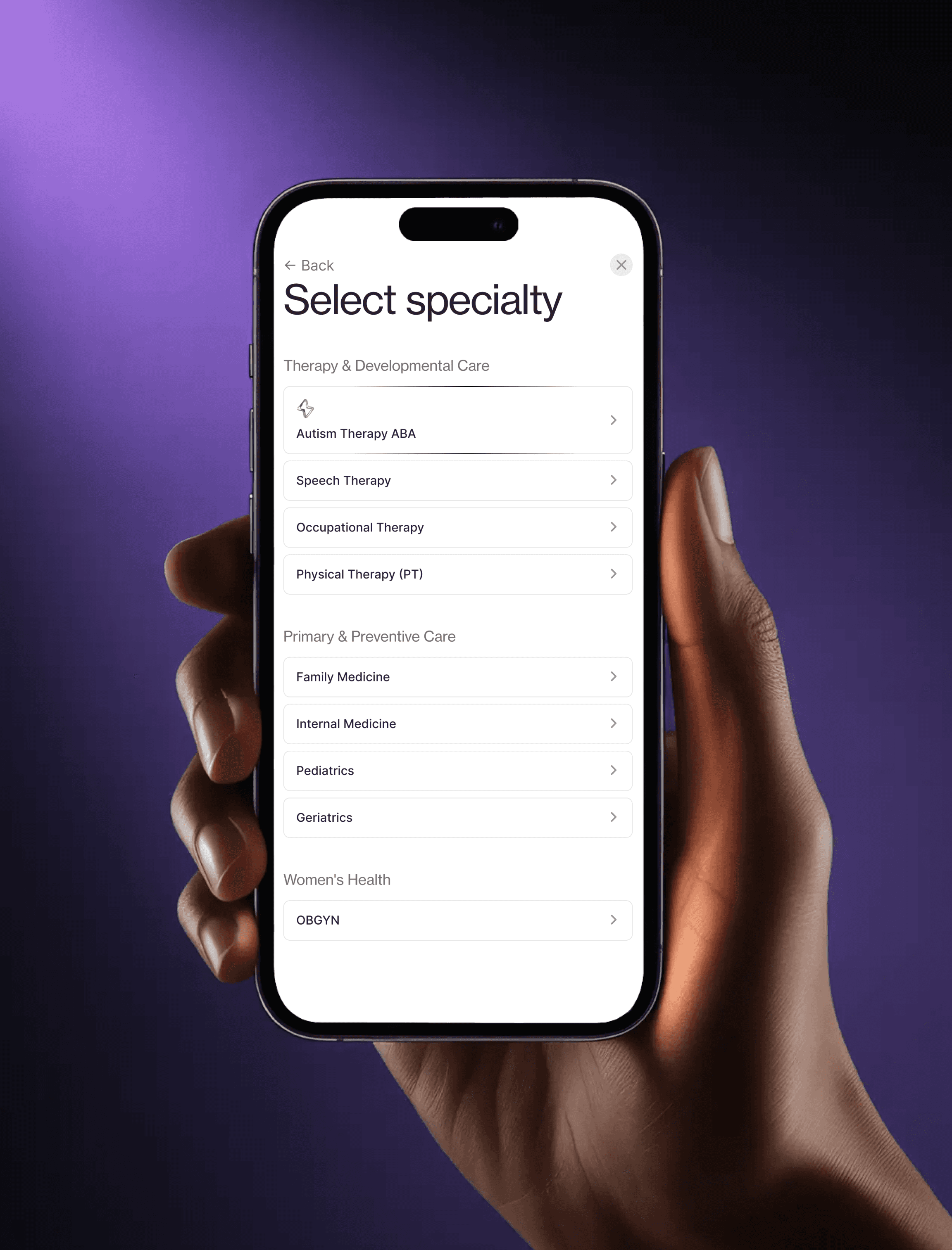 Get connected to trusted specialists across ABA therapy, mental health, pediatrics, and more. We coordinate your care so you can focus on what matters most: feeling better.