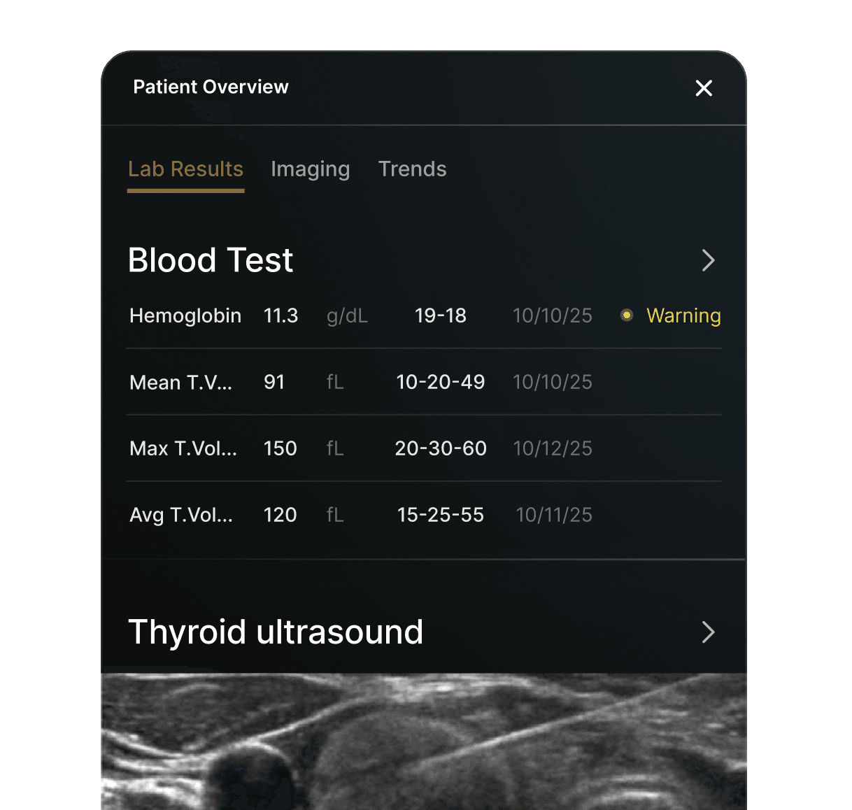 Track lab results in structured views, view historical trends, and access automated lab imports to make faster, more accurate clinical decisions.