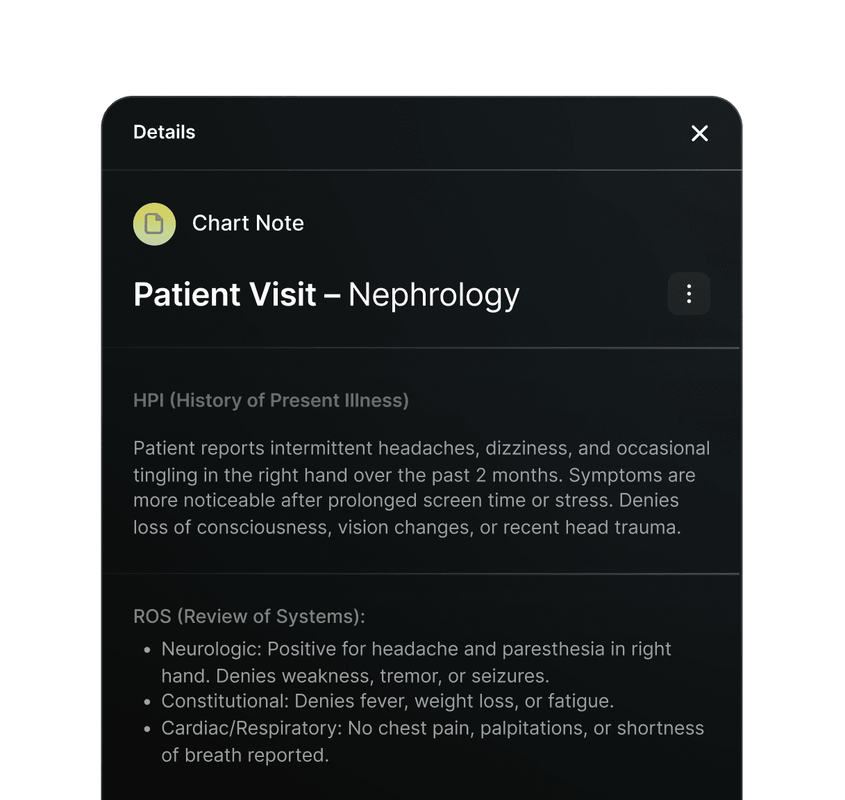 Create and update patient notes quickly with templates tailored for CKD, dialysis, and hypertension.